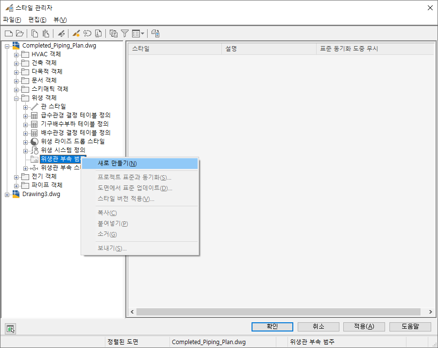 장치, 전반, 스키매틱 기호 및 위생관 부속 등의 다양한 MEP 객체에 대해 범주를 작성할 수 있습니다. 다음 단계는 위생관의 스타일을 분류하는 방법을 설명합니다.