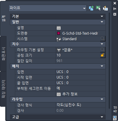 선택한 파이프 객체에 대한 라우팅 기본 설정을 지정합니다. |