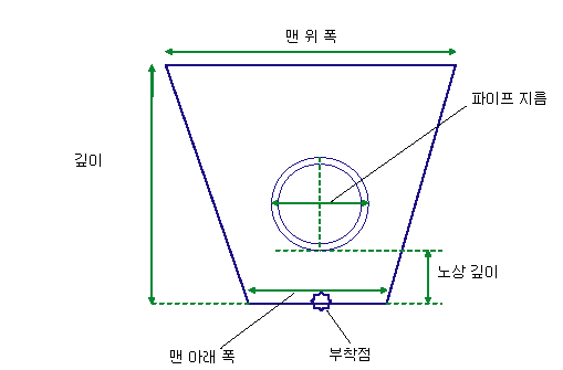 | 맨 아래 폭 | 터파기의 맨 아래 폭입니다. | 숫자, 양수 |