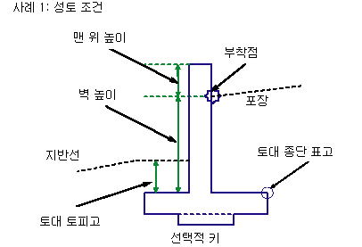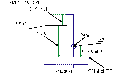 | 토대 토피고 | 토대 맨 위에서 성토의 벽 뒷쪽 마감 경사선 또는 절토의 갈고리까지의 토피고 깊이입니다. | 숫자 |