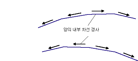 부착점으로부터 외향으로 내부 차선에 대해 허용되는 최대 경사(%)입니다. |