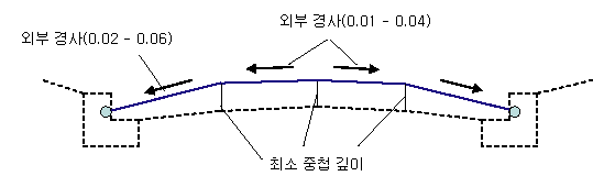 1/4 점 및 크라운에서의 최소 중첩 깊이입니다. |