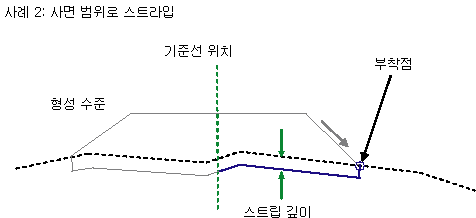이 횡단구성요소는 기존의 맨 위 도면층 스트립을 지정된 깊이로 지정하는 데 사용됩니다.