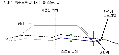 | 오르막 | 원래 사면 전개점에서 내리막 경사 시작 부분까지 스트립 확장의 기본 오르막입니다. | 숫자 | -2 (:1) |