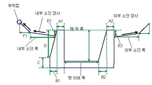 | 외부 소단 폭 | 외부 소단 폭(선택 사항)입니다. 소단이 없으면 0(영)을 입력합니다. | 숫자, 양수 |