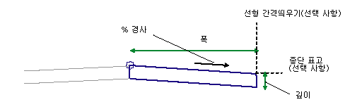 폭이 간격띄우기 선형에 연결되도록 조정됩니다. 경사(%) 입력 값은 조정된 폭에 대해 유지됩니다. |