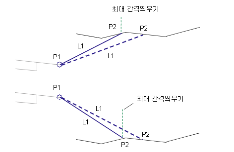 사면 전개점에 대한 허용 가능한 최대 간격띄우기입니다. |