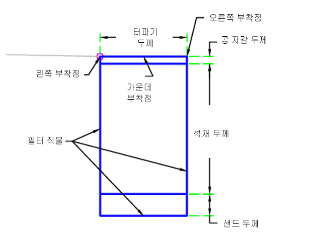 | L2 | PeaGravel, FilterFabric | 콩 자갈 도면층, 필터 직물 포함 매개변수가 예로 설정된 경우 필터 직물이 포함됨 |