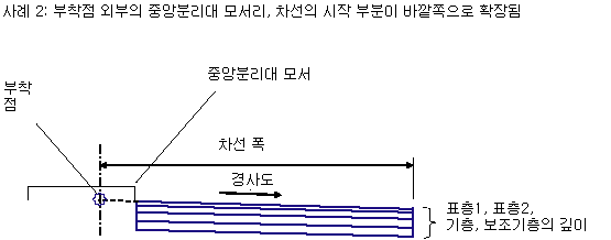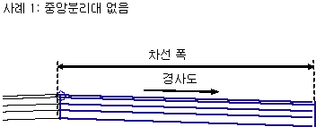 중앙분리대가 없는 조건의 경우 차선의 폭 즉, 부착점에서 주행로 외부 모서리까지입니다. |