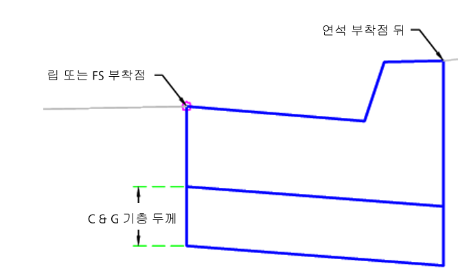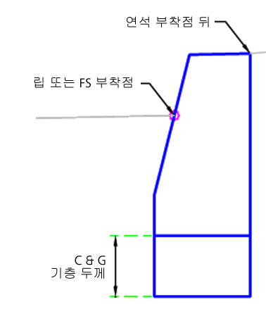 | 부착점 | 연석 또는 연석과 측수로의 부착점 | 립 또는 FS/연석 뒤 | 립 또는 FS |