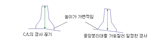 오른쪽 중앙분리대 지표면의 경사입니다. |