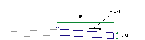 이 횡단구성요소는 한쪽 끝에서 수직 링크로 닫힌 정지 계획선과 보조기층 지표면을 작성합니다. 차선은 지정된 폭, 깊이 및 경사로 부착점에서 바깥쪽에 삽입됩니다.