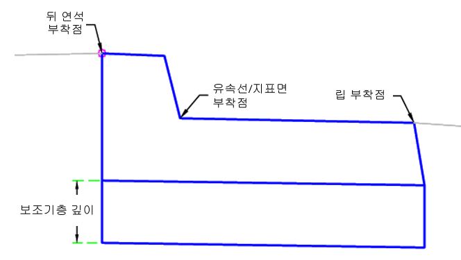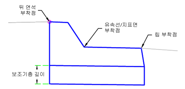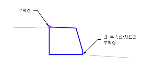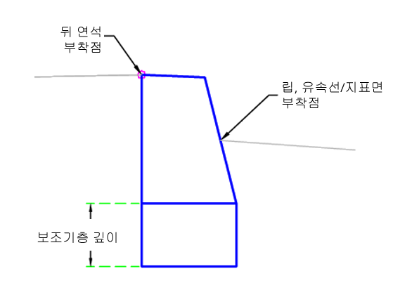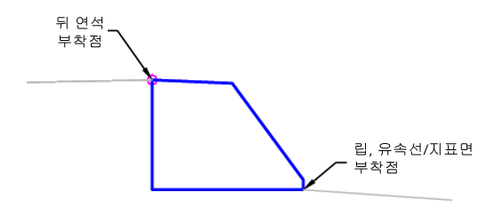 | 부착점 | 연석의 부착점 위치를 지정합니다. | Lip/BackCurb/Flowline-Surface |