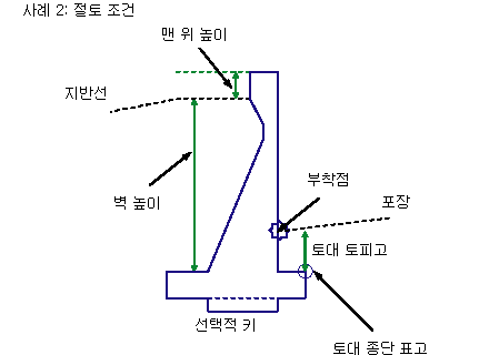 | 맨 위 높이 | 벽 맨 위와 성토의 갈고리 또는 절토의 새 갈고리 사이의 거리입니다. | 숫자 |