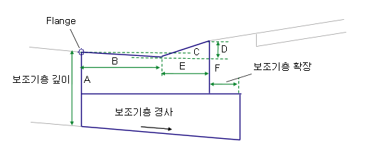 플랜지 점에서 보조기층의 깊이입니다. 보조기층이 없으면 0을 사용하십시오. |