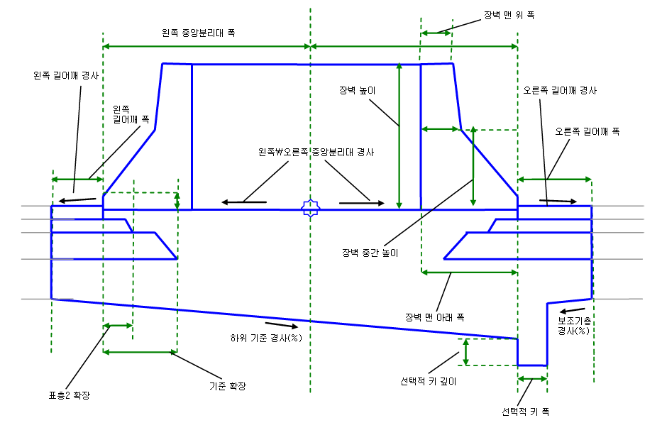 | 길어깨 높이 간격띄우기 | 포장된 길어깨의 모서리를 기준으로 중앙분리대 모서리 점 표고의 차입니다. | 숫자 |