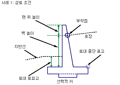 | 토대 토피고 | 토대 맨 위에서 성토의 벽 뒷쪽 마감 경사선 또는 절토의 갈고리까지의 토피고 깊이입니다. | 숫자 |