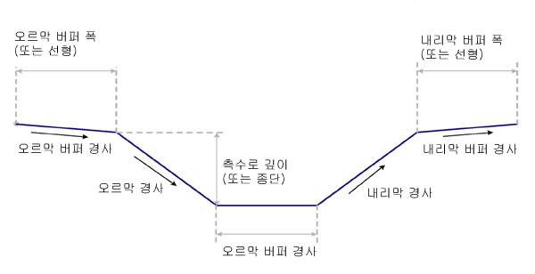 | 배수로 포함 | 절성토에서 또는 절토나 성토에만 배수로를 사용하도록 지정합니다. | 선택 리스트: a)절토/성토, b) 절토, c) 성토 | 절토/성토 |