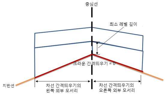 | 기존 왼쪽 차선 내부 모서리 | 왼쪽 차선의 지반선 경사를 계산하기 위한 시작점 | 숫자 | 0.000m(0.00피트) |
