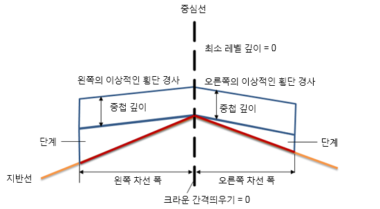| 지반선 횡단 경사 - 이상적인 횡단 경사 | -0.2% |
