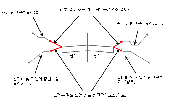 | B | 오른쪽 차선 횡단구성요소입니다. |