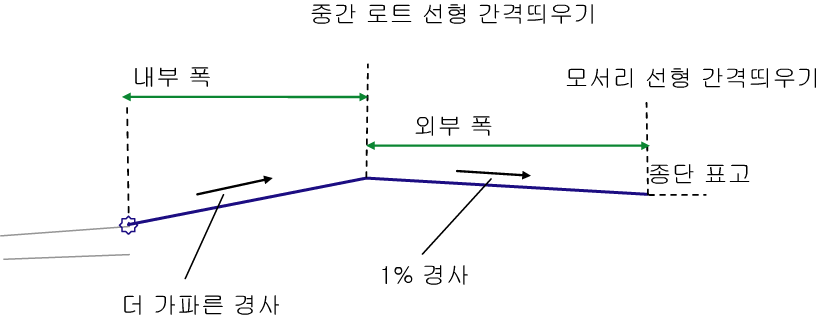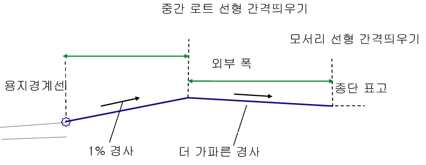 로트의 외부 폭에 대한 최소 경사입니다. |