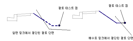 배수로 맨 아래의 외부 모서리입니다(절토 조건만 해당). |