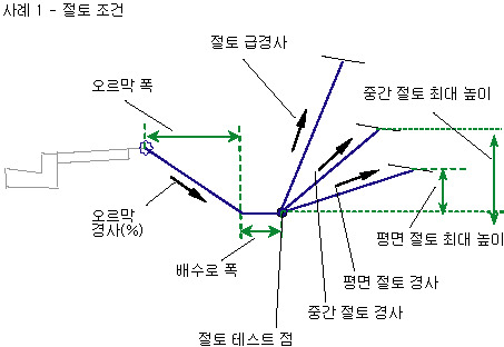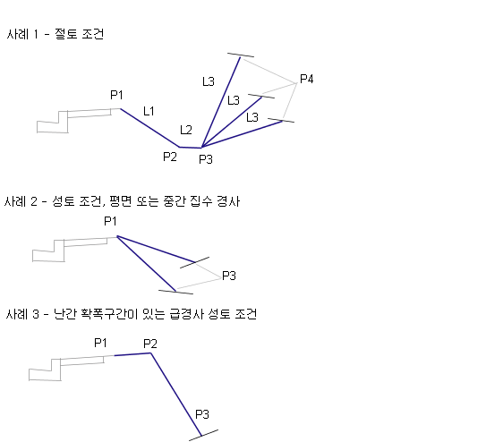 배수로 맨 아래의 내부 모서리입니다(절토 조건만 해당). |