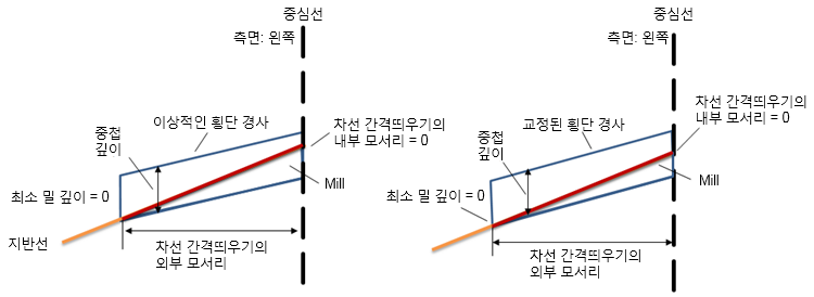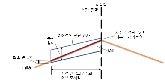 밀링 도면층 맨 아래와 지반선 도면층 맨 아래 사이의 최소 밀링 깊이입니다.