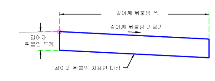 | 길어깨 뒤붙임 표면 | 사면 전개 지표면의 이름입니다. 지표면을 지정하기 위한 대상으로 지표면 객체 유형을 사용할 수 있습니다. | 선택 사항 |