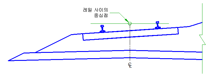피벗 방법을 중심 기준선으로 설정하면 두 레일은 외부 레일 위쪽과 내부 레일 아래쪽을 기준으로 캔트 값의 절반과 동일하도록 조정됩니다.