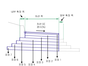 | 표층7 폭 지정 | 표층7 도면층의 폭 지정 방법을 지정합니다. | 문자열, 옵션 콤보 리스트: 높은 포장 도면층 일치, 폭, 내부 간격띄우기-외부 간격띄우기, 내부 간격띄우기-폭 | 높은 포장 도면층 일치 |