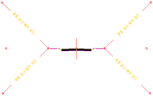 횡단구성요소가 표준횡단 표식기 왼쪽에 표시됩니다. 대칭 명령은 선택한 횡단구성요소의 대칭 이미지를 작성합니다. 측면 매개변수를 제외한 모든 횡단구성요소 매개변수가 유지됩니다.