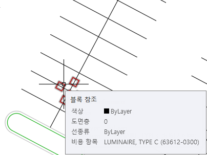 도면에서 모든 주차장 자리 구분선이 선택됩니다.