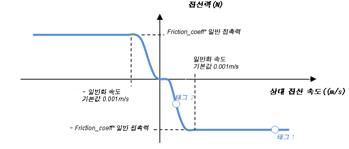 달라붙는 접촉(또는 롤링 접촉)의 경우 상대 접선 속도가 0과 같을 때 이 모형을 사용하면 접선력이 Null이 됩니다.