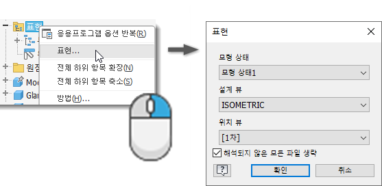 구성을 사용하여 공통 설계 세트 또는 설계 시리즈를 유지합니다. 표현을 사용하여 설계의 뷰 및 위치 측면을 제어합니다.