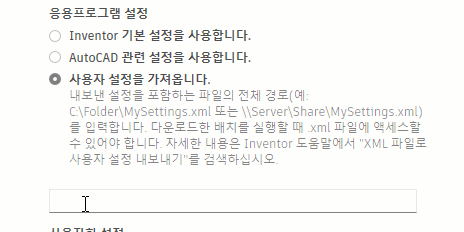 기본 Inventor 응용프로그램 옵션 설정과 AutoCAD 관련 설정의 차이점은 무엇입니까?