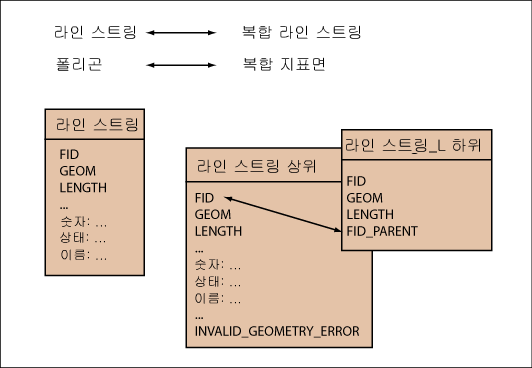 행 문자열 또는 폴리곤 피쳐 클래스를 복합 피쳐 클래스로 변환할 수 있습니다. 기존 행 문자열 또는 폴리곤 피쳐 클래스는 상위 피쳐 클래스이고 새 하위 피쳐 클래스가 작성됩니다. 기존 상위 클래스의 속성은 모두 유지됩니다.