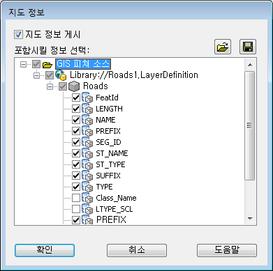 - 지도 정보 대화상자에서 리스트의 항목을 확장하고 도로 및 구획 항목을 선택합니다.