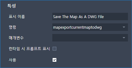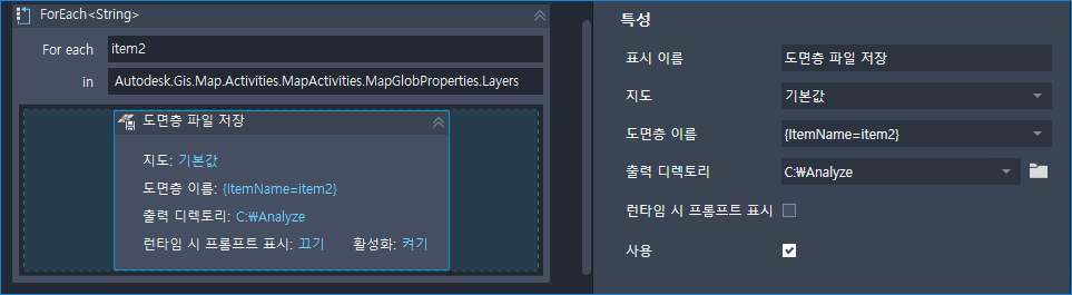 이 작업에서는 현재 지도의 각 도면층을 지정된 폴더의 .layer 파일로 저장합니다.