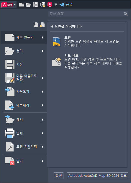 AutoCAD Map 3D 툴셋을 계속 살펴보려면 작업공간으로 이동합니다.