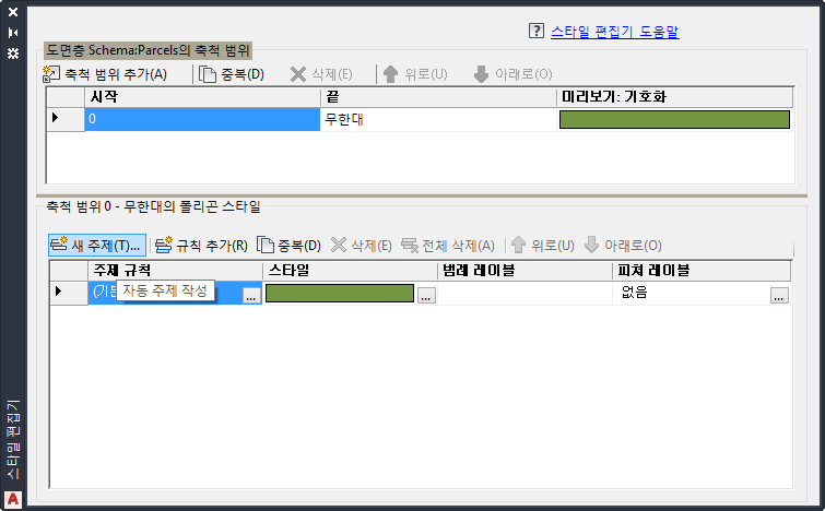 새 주제를 클릭하여 구획 도면층에 대한 주제를 정의합니다.