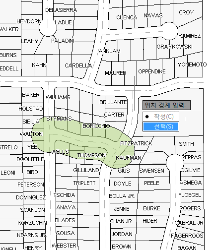 조회 내 버퍼를 사용하여 해당 버퍼에 의해 표시되는 건축 지역 내에 있는 구획을 결정합니다. 그런 다음 나중에 사용하기 위해 해당 구획을 SDF 파일로 내보냅니다.
