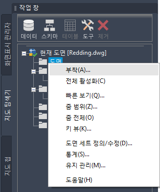작업 창의 지도 탐색기 탭에서 도면을 부착합니다.