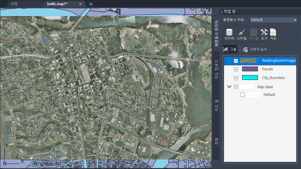 주: 이 연습에서는 이전 연습에서 작성하고 수정한 build_map1.dwg 지도를 사용합니다.