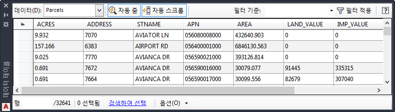 구획 도면층과 연관된 데이터가 표시됩니다.