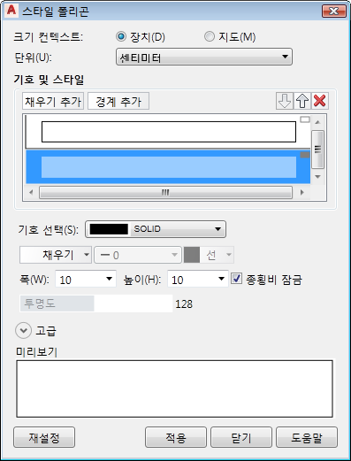 구획 도면층의 전경 투명도를 변경합니다.