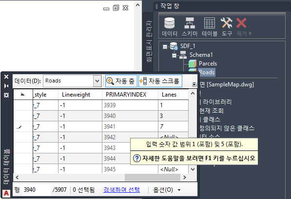 앞서 작성한 SDF 파일에 연결하고 새 특성을 해당 스키마에 추가했습니다. 데이터 테이블에 새 특성에 대한 값을 입력했습니다.