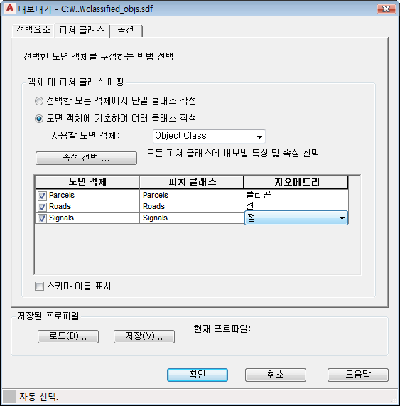 - 사용할 도면 객체에서 객체 클래스를 선택합니다.