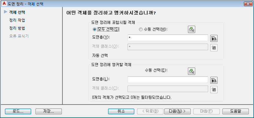 정리 작업에 포함할 모든 객체를 선택합니다.